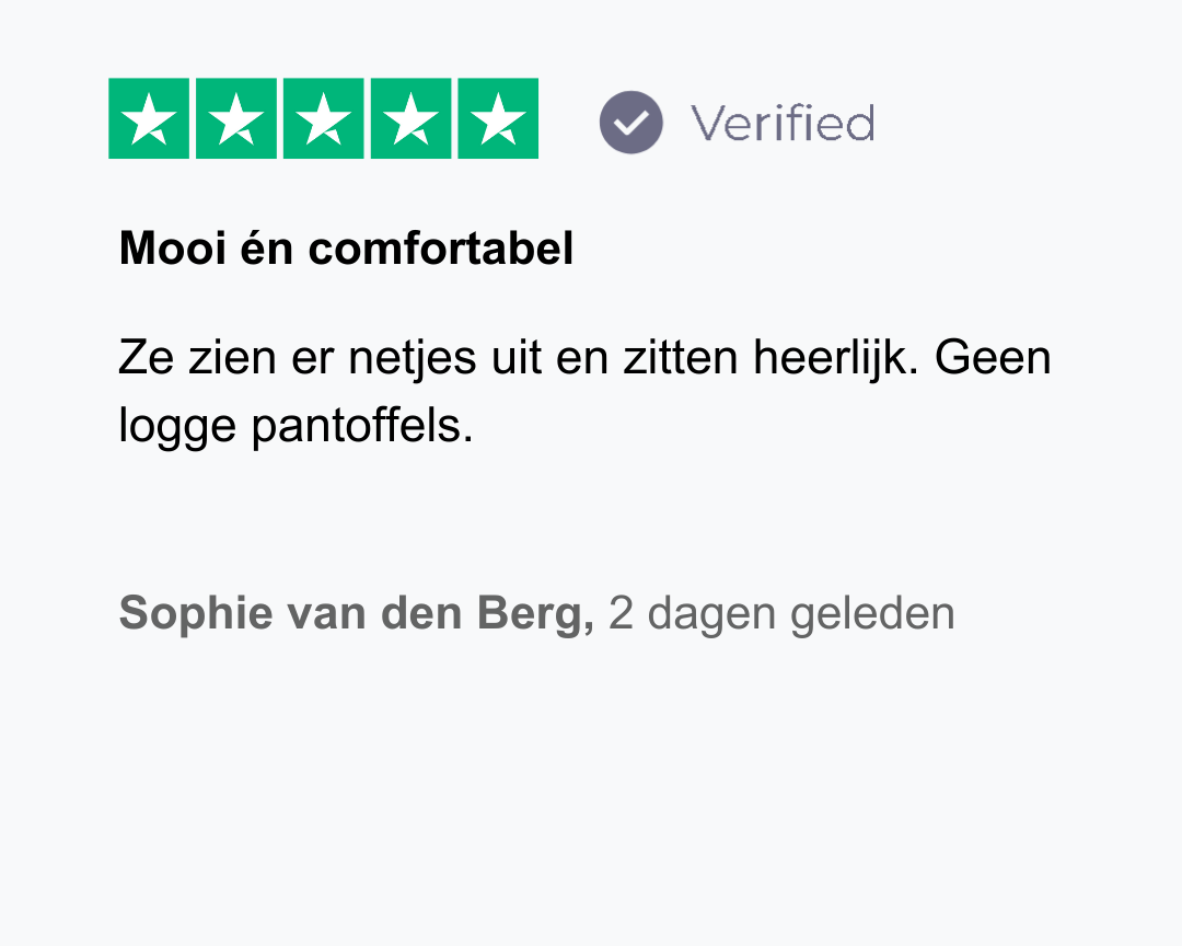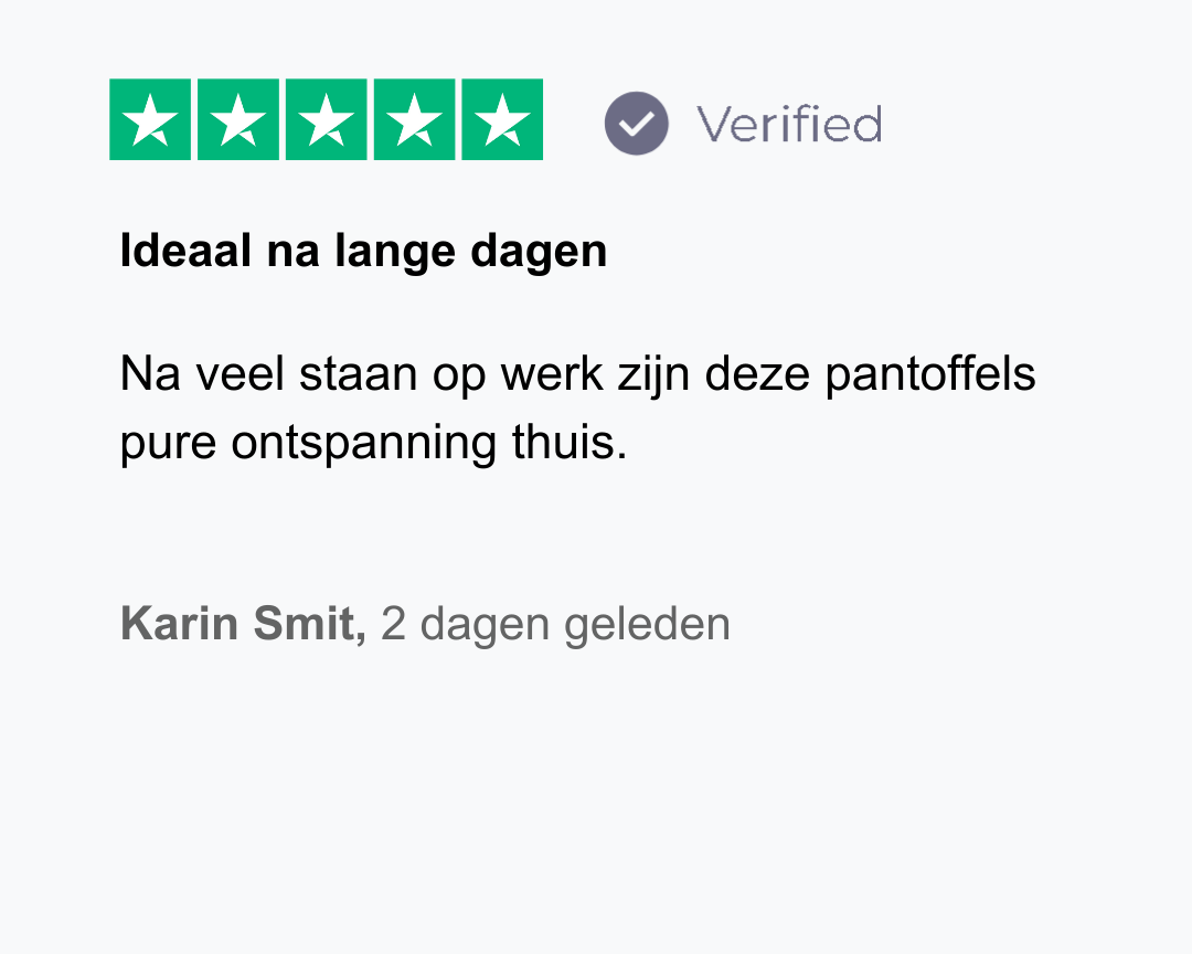 Of je nu lange dagen maakt, veel staat of simpelweg bewust kiest voor zorgzame momenten thuis — deze pantoffels geven je voeten de rust die ze verdienen en jou het gevoel van balans, comfort en aandacht voor jezelf.