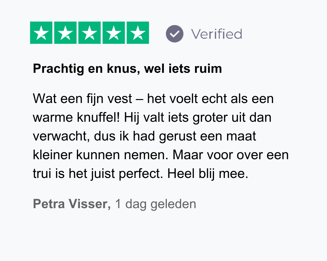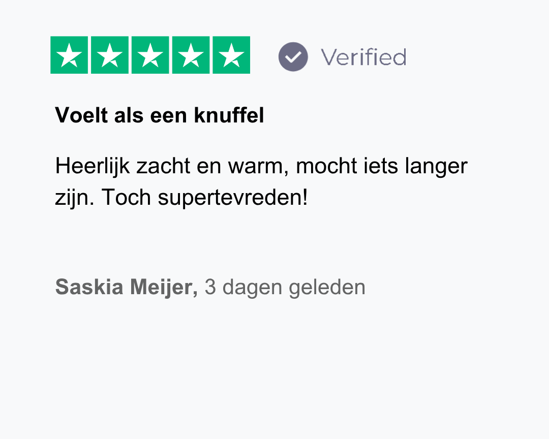 We staan volledig achter de kwaliteit van onze producten en geloven dat jij er net zo blij mee zult zijn. Daarom krijg je 30 dagen de tijd om je aankoop risicoloos uit te proberen. Niet tevreden? Dan ontvang je zonder gedoe je geld terug.